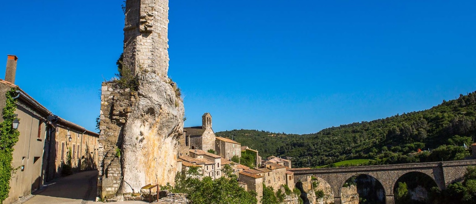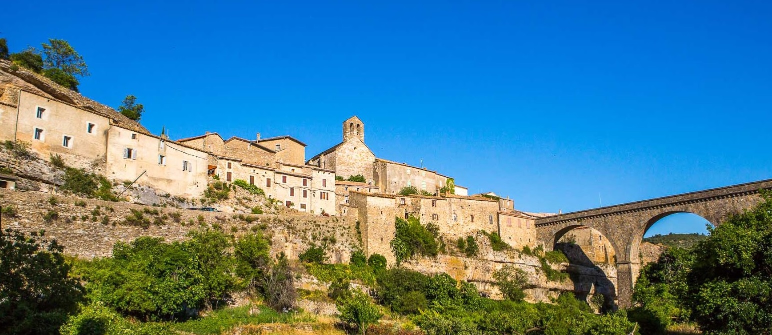Tapi sur un promontoire modelé par deux canyons creusés dans le calcaire, le vieux village est un vaisseau de pierre échoué dans la garrigue languedocienne. |