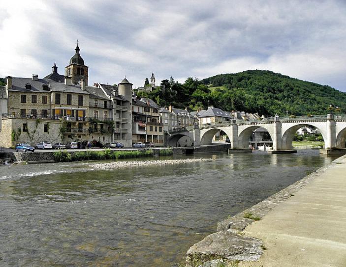 bourg se situe au confluent du Lot et de La Truyère. Deux ponts