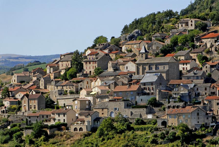 causses. Des maisons anciennes bordent les rues qui descendent vers