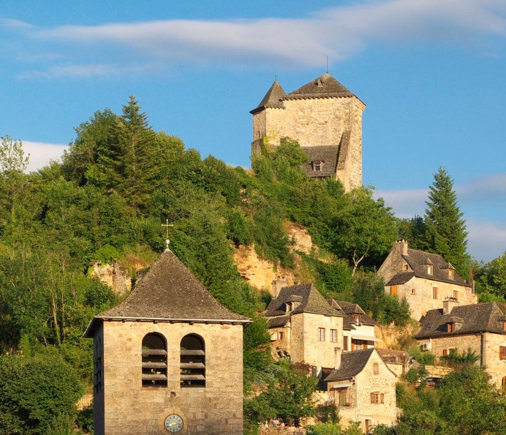 le plateau du Lévézou, le village est assis au pied de son château