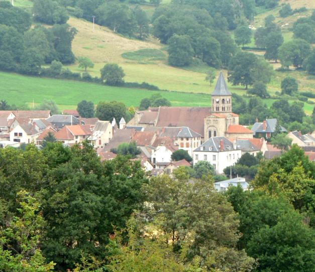 au bord de la Sioule, perchée sur le plateau en limite des Combrailles,